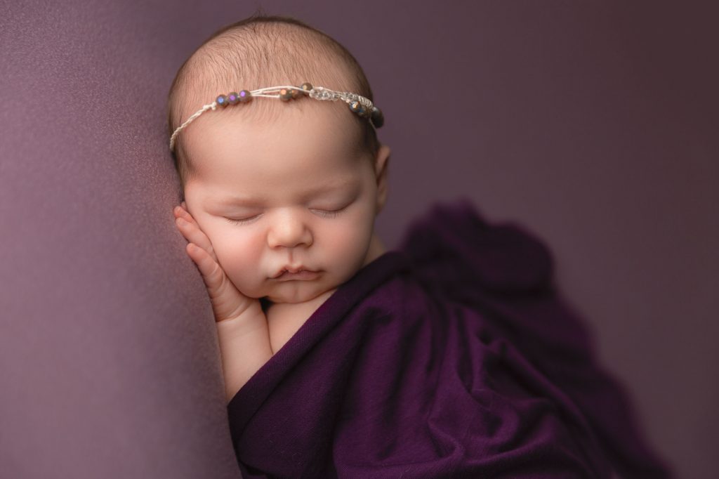 Now, I love a baby swaddled like a little baby burrito- and I do it for nearly every one of my sessions! Most babies love it, and it allows me to easily capture their sweet face while they’re safe and secure. There’s just no reason to position baby upright while they’re swaddled, in my opinion.