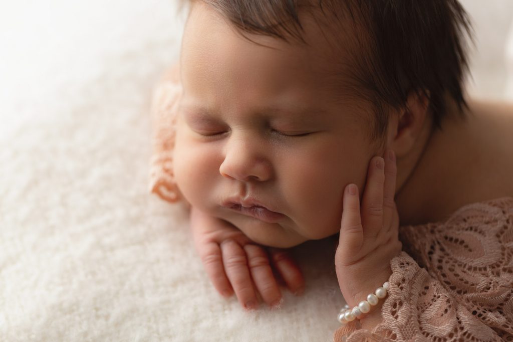Positioning baby in a way to create a properly lit and well-composed image (AND most importantly) that baby is comfortable and supported in a natural way at all times is not dangerous. It might be turning baby’s cheek toward the light. Tucking their hands gently under their chin or on their tummies. Laying them on their back or side.